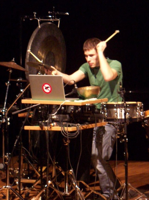 The Swiss percussion player Titus Bellwald studied classical percussion and „Music and Media Arts“ at HKB, Berne, Switzerland. After obtaining a Master in Pedagogy he dedicated himself in researching ways of interaction of percussion and electronic sound emitters. During his studies for Master in performance (with speciality „Music and Media Arts“) he wrote several pieces for percussion instruments and live electronics (listen or download scores).