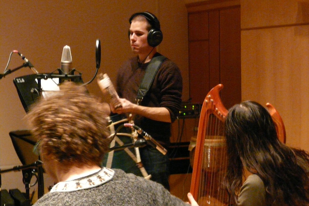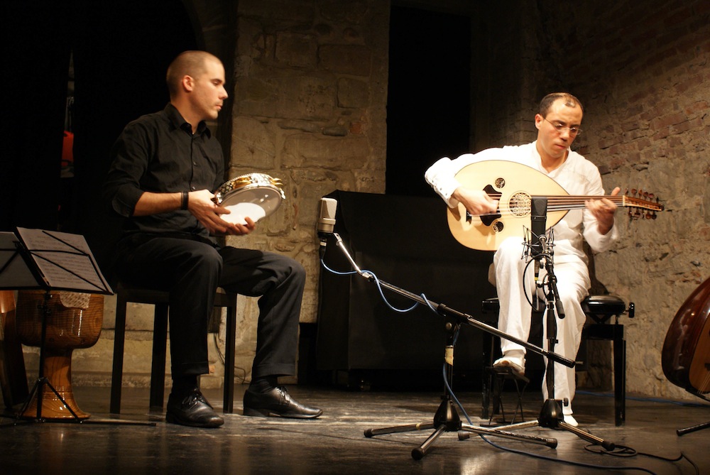 Titus Bellwald specialises not only in contemporary and ancient classical music but also on hand percussion – but not in the widely known latin american Congas or African Djembe but rather in oriental and mediterranean drums: he studies persian Tombak/Zarb with Pedram Khavarzamini (and also took lessons with Keyvan and Bijan Chemirani, Madjid Khaladj and Pejmân Hadadi), Riq, Tamburello and other frame drums he studies with Zohar Fresco and various Arab and Italian percussionists. He regularily attends seminars organised by Ross Daly’s amazing Labirinth Musical Workshop.
